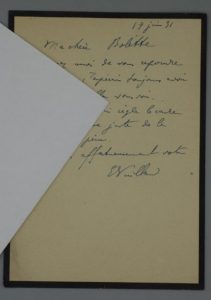 VUILLARD, Édouard. L.A.S., adressée à Bolette Natanson. S.l., 17 juin 1931. Encre bleue sur double feuillet de papier de deuil.