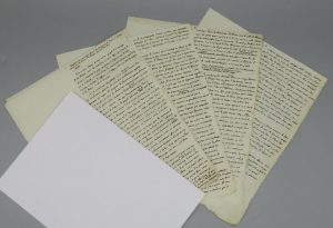 [AIN]. BARBIÉ DU BOCCAGE, Jean-Denis (1760-1825), géographe et cartographe, membre de l'Institut ; il fut un grand spécialiste de la cartographie de l'antiquité. Rapport à la Société Royale des Antiquaires de France le 19 avril 1824 par Mr Barbié du Bocage. Manuscrit autographe avec corrections (5 pp. in-4 d'une minuscule écriture) et manuscrit de mise au net avec additions autographes (14 pp. in-4).