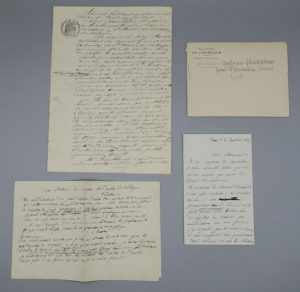 Ensemble de 16 brouillons de discours, lettres et articles (38 pp. in-4 et in-8) concernant les élections au Conseil Général du Gard, canton de Saint-André-de-Valborgne, en 1889, 1892 et 1898 : professions de foi à destination des électeurs, discours prononcés lors de différentes manifestations (" banquet du 22 sept. 1892 "), brouillons de lettres (" à M. le président ", à " cher collègue " [Boudon], à la République du Midi, au directeur du Petit Méridional). Bon nombre de ces documents traitent de la fermeture de la filature dans le cas où il serait élu.