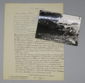 Témoignage sur PASTEUR et sa maison de Dôle. Il commente le cliché qu'il avait pris de la maison de Pasteur en 1883 (joint) : " La maison qui était à côté, à la place du laboratoire, était une petite masure basse appartenant à Kiaquié-Dalay. Il y avait sous cette maison un passage couvert qui permettait de passer pour aller derrière la maison du père de Pasteur. Je jardin actuel n'appartient pas à la famille Pasteur, on le traversait pour aller pêcher dans la Cuisance []. La tache noire contre la façade représente les acacias qui étaient devant []. Sur le pont, à côté de mon père, je crois, sans pouvoir l'affirmer, que c'est mon frère. Je reconnais mon père par son chapeau haut de forme [] ". Il compte se rendre à Arbois et l'aider dans son oeuvre " non pas pour vous donner un encouragement, mais pour vous aider à conserver cette maison où j'ai passé mon enfance ". Il évoque ensuite ses travaux et le souvenir de Pasteur [il publia en 1938, aux éditions du Souvenir sanitaire, À l'ombre de Pasteur : souvenirs personnels]. " Dans l'article sur le traitement de la rage, j'ai mis deux fois appareil de Marsch, il faut mettre à la place appareil de H. Sainte-Claire-Deville. Il s'agit du flacon dans lequel Pasteur dessèche mes moelles rabiques []. Aidez-moi, utilisez-moi en faveur de la maison Pasteur. Que le mouvement sanitaire prenne la tête de ce mouvement []. Il fallait un " mouvement sanitaire " pour me l'arracher mois par mois et réveiller ma mémoire. Il fallait un Dequiot pour me le faire réunir en un volume. Mes souvenirs continuent à se représenter à mon esprit. Jules Renault commencera son rapport sur la vaccination de Ramou à l'Académie par une histoire que je n'ai pas racontée, celle du 1er congrès de médecine de Londres en 1881 et l'origine du mot (?) pour désigner les virus atténués. Pasteur à Londres a proposé de donner ce nom en hommage à la découverte de Jenner. Il présentait les virus atténués du choléra des poules, du charbon, pas encore du rouget ni de la rage (le rouget date de 1882) et (la rage de 1884) []. Pasteur arrivant au congrès au bras de Lister demande : " Pourquoi ces acclamations, c'est le Prince de Galles qui arrive ? ". Apprenant que la foule l'acclame, il fut ému comme il savait l'être, n'ayant pas l'habitude du contact des foules. On lui a donné la parole, et dans son émotion, il a dit : " cette atténuation des virus (nom qu'il employait jusqu'alors) est q.q. chose d'analogue à ce qu'a trouvé Jenner et en souvenir de cette grande découverte dans le pays de ce grand homme, je propose de donner le nom de vaccins à ces virus atténués " [] ".