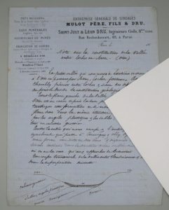 Rapport (orné de 2 schémas à l'encre) sur les sondages effectués sur différents points de cette vallée, donnant ainsi une cartographique géologique et hydrologique de cette " petite vallée qui commence à Lardières et descend à l'Oise en passant par Méru, Esches, Fosseuse, Bornel et Chambly ".