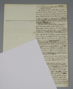 [OISE - PRÉHISTOIRE]. BARBIÉ DU BOCCAGE, Jean-Denis (1760-1825), géographe et cartographe, membre de l'Institut ; il fut un grand spécialiste de la cartographie de l'antiquité. Description d'une grotte antique située près de Creil dans le département de l'Oise. Manuscrit autographe avec nombreuses corrections. Vers 1820. 6 pp. in-4 d'une minuscule écriture.