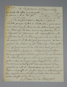 Au secours de l'hôpital de Tournus. " La réponse de M. l'intendant de Bourgogne à ce sujet me paroit si faible que je ne puis m'empêcher de revenir à la charge. Car enfin si 14 s. par minot de sel ne sont pas capables de soutenir l'hôpital, ce sera bien pis quand il sera privé de ce secours. En attendant qu'on lui en procure un plus abondant, je vous supplie de lui continuer celui qu'il demande et d'en parler à M. le contrôleur général. Le besoin est pressant [] ". Mention autographe de Trudaine en haut : " me remettre cette affaire pour en parler de nouveau à M. le Conr Genl ". Et d'une autre main : " Ecrit par M. Trudaine à M. l'évêque de Limoges ".