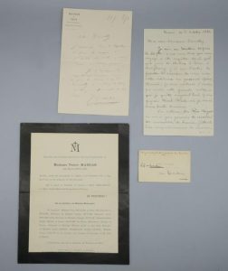 Joint 2 lettres de son frère Albert Mahias, chef de bataillon d'infanterie de marine au Tonkin, Hanoï et Rio Négro, 1884. 6 pp. in-8, également adressée à Donally, lui donnant des instructions pour la sculpture du tombeau de son frère, et évoquant son arrivée au Tonkin + quelques autres documents dont un article de presse sur Jules Mahias.
