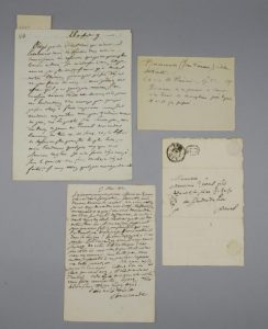 Bel ensemble de lettres à divers correspondants. À Charles Nodier (alors à Quintigny, mars 1812, belle lettre). À Quérard (2, sur les Epimérismes d'Hérodien). À Nicopoulo (2, 1815, avec formules de politesse en grec). À Raynouard (2, 1813-1814, évoquant son ouvrage sur les Templiers). À Jean-François Gail (1829). À l'orientaliste Louis-Pierre Eugène Sédillot (2). À l'éditeur Michaud (5, écriture d'articles pour la Biographie universelle, en particulier sur Plutarque). Au librairie Ledoux (2, sur l'édition du Cours de La Harpe, 1824-1825). À Chardon de La Rochette (belle lettre érudite, 1808). À Tissot professeur du Collège de France. Au libraire Maradan (an 9, sur sa ruine, proposant d'éditer des récits de voyage), etc. dont une lettre entièrement écrite en grec.
