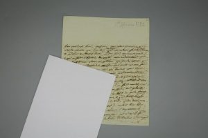 D'ENTRECASTEAUX, Antoine Bruni (1737-1793), navigateur, il partit, à la tête de deux frégates, La Recherche et l'Espérance, à la recherche de l'expédition de La Pérouse, explorant les rivages de la Nouvelle-Zélande et des îles de l'océan Indien. L.A.S. aux frères Roux, armateurs et négociants à Marseille. Brest, 1er février 1782. 2 pp. ½ in-4 (découpe d'une bande vierge dans la marge inférieure du second feuillet). Adresse au dos avec cachet de cire.