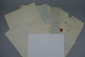 Au bibliothécaire de Napoléon III Lefèvre Deumier (demandant une audience impériale), à Frémery de l'Ecole des langues orientales (sur la traduction en persan et en arabe du " roman de Sindibad "), à Benj. Duprat (commande d'ouvrages sur l'Inde), sur la recherches d'ouvrages de S. de Sacy, etc. Figure également une lettre écrite durant son exil chez Arcisse de Caumont lors du siège de Paris.