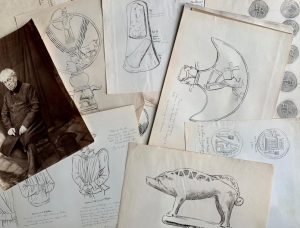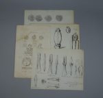 Notes généalogiques et héraldiques, illustrées de très nombreux dessins à la plume finement réalisés (portraits de personnages du XVe d'après des ouvrages anciens, étendards et enseignes, armes, jetons, empreintes de monnaies, objets préhistoriques, bijoux, etc.), principalement autour de la famille de La Tour d'Auvergne au XVe siècle. Ainsi qu'un portrait photographique à l'albumine. Probablement en vue d'une publication.