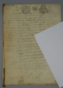 [JÉSUITES]. P.S. par Alexandre Louis François Desmeure et Étienne-Charles Tournois, conseillers du Roi, notaires au Châtelet, 7 septembre 1740 ; cahier de 15 pages sur vélin in-4, cachets notariaux.