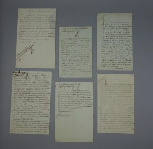Très intéressante correspondance principalement consacrée au château de CHAMPLÂTREUX, ses aménagements, et les tableaux d'HUBERT ROBERT. Propriété de la famille Molé, le château de Champlâtreux, sous l'ancien régime, bénéficie d'un luxe inouï avec quatre grandes salles d'apparat et 23 chambres. Mais durant la Révolution, le mobilier est dispersé et le château transformé en hôpital militaire. Mathieu Molé s'emploie alors à le remettre en état et le remeubler. " Je suis convenu, monsieur, avec M. Robert qui fait en ce moment 4 gds tableaux et deux dessus de porte pour le sallon de Champlatreux, que vous lui payeriez quand il le demanderait le montant des toiles et des bordures, sur les quittances des fournisseurs []. [L'inventaire du cabinet d'Hubert Robert indique, en effet, sous le n°110 : " Quatre [projets de composition] de forme étroite en hauteur, projets de tableaux de place, qui ont été exécutés pour le Château de Champlatreux "]. Mais visiblement les tableaux ont subi des dégradations. " Je lui ai dit aussi de vous avertir dans le cas où l'hiver gâteroit encore les tableaux afin que de concert avec M. Robert vous décideriez ce qu'il y auroit à faire sur le champ pour les préserver [] ". Nouvelles acquisitions de meubles. " Malgré les acquisitions que y avez faites, j'ai été forcé d'acheter encore beaucoup de meubles [] ". 8 frimaire à midi. " Je m'empresse de vous instruire Monsieur de la triste position dans laquelle ma soeur et moi allons nous trouver. Les percepteurs pour l'an 8 des communes de Jagny et Champlatreux ont fait une saisie réelle de tous les meubles du château et ils se disposent à procéder à la vente dans deux jours []. Cela ne fait que prouver ce que je savois déjà, c'est qu'étant le seul grand propriétaire dans ce canton nous sommes les plastrons de tous les coquins du pays [] ".