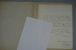 - Copie de la lettre au ministre de l'Intérieur (4 pp. in-4), développant l'historique et justifiant le surcoût. " Ce piédestal devait être composé de 25 blocs de granite qui sont remplacés maintenant par 5 blocs colossaux formant 5 assises superposées comme suit : []. Dans le cours de l'exploitation de mes granites, je découvris un rocher extraordinairement beau en dimensions et en qualité, capable de fournir le dé en un seul bloc, la corniche et l'acrotère chacun en un seul bloc aussi. Je proposai alors de faire le piédestal en cinq assises d'un seul bloc chacune, ce qui constituerait un monument qui rivaliserait de beauté avec le monolithe auquel il devait servir de base []. Les 5 blocs qui le composent ont chacun un volume extraordinaire, et, l'un d'eux, le Dé, est un colosse qui n'a son égal ni en France, ni chez aucune nation voisine de la France. Ma proposition fut vivement accueillie ; mais des travaux aussi gigantesques n'ayant jamais été entrepris, on ne pouvait apprécier ce qu'ils couteraient en sus du prix de mon premier marché [] "