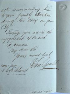 GOULD, John (1804-1881), ornithologue et naturaliste britannique. L.A.S. à Isidore Geoffroy Saint-Hilaire. London, 28 janvier 1847. 2 pp. in-8. Adresse au dos.