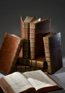 DICTIONNAIRE UNIVERSEL FRANÇOIS ET LATIN, contenant la signification et la définition tant des mots de l'une & l'autre langue, avec leurs différents usages, que des termes propres de chaque État & et de chaque Profession. La description de toutes les choses naturelles & artificielles ; leurs figures ; leurs espèces, leurs usages & leurs propriétés. L'explication de tout ce que renferment les sciences & les arts, soit libéraux, soit mécaniques. Avec des remarques d'érudition et de critique... Nouvelle édition corrigée... NANCY, PIERRE ANTOINE, 1740 - PARIS, COMPAGNIE DES LIBRAIRES ASSOCIÉS, 1752. Sept volumes, in-folio, texte sur deux colonnes, pleines reliures de l'époque en veau marbré. Dos à 6 nerfs cloisonnés, fleuronnés et dorés portant les titres dorés, large roulette dorée sur les coupes, tranches marbrées de plusieurs couleurs. Quelques faibles usures du temps.