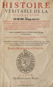 Ouvrage important pour l'histoire de Lyon, comprenant: Première partie, Fondation de la ville ; Seconde partie, la ville sous la domination des Bourguignons ; Troisième partie, l'état de la ville sous le règne des Françoys ; Quatrième partie : État et gouvernement politique de la ville, "authoritez et prerogatives des Prevost des Marchands et Eschevins, Privilèges, franchises et libertez des Bourgeois & habitants".