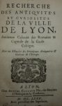 SPON (Jacob). RECHERCHE DES ANTIQUITÉS ET CURIOSITÉS DE LA VILLE DE LYON,