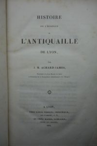 ACHARD - JAMES (J. M.). HISTOIRE DE L'HOSPICE DE L'ANTIQUAILLE DE LYON. LYON, LOUIS PERRIN IMPRIMEUR & MAIRE LIBRAIRE, 1834. Un volume, in-8, de (2) ff., 347 pp., demi-