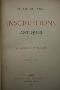 ALLMER (A.) - DISSARD (P.). MUSÉE DE LYON - INSCRIPTIONS ANTIQUES. LYON,