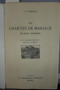 BERLIOZ (P. B.). LES CHARTES DE MARIAGE EN PAYS LYONNAIS. LYON, IMPRIMERIE
