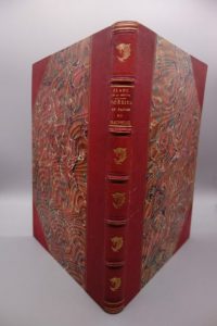 BLANC DIT LA GOUTTE. POÉSIES EN PATOIS DU DAUPHINÉ - GRENOBLE MALHÉROU. GRENOBLE, IMPRIMERIE BARATIER, 1860 - GRENOBLE, RAHOULT ET DARDELET, 1874. Un volume, in-4, de 135 pp., (2) ff. - IX pp., 75 pp., demi-reliure à coins en chagrin rouge. Dos à 5 nerfs orné entre les nerfs d'une pièce dorée du blason du Dauphiné et portant le titre doré, filets dorés sur les plats, tête dorée. Quelques rousseurs pâles.