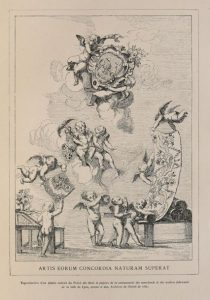 Frontispice représentant la communauté de la soie à Lyon.
