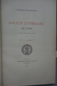 CHARVET (E.-I.-G.). LA SOCIÉTÉ LITTÉRAIRE DE LYON AU DIX-HUITIÈME SIÈCLE. LYON,