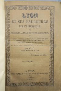 Très rare édition de cet ouvrage qui prévoyait les futures inondations de Lyon et apportait la solution du détournement du Rhône et de la Saône.
