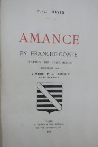 DAVID (P. - L.). AMANCE EN FRANCHE-COMTÉ, d'après des documents recueillis par l'Abbé P. - L. Eberlé curé d'Amance. PARIS, PICARD & fils, 1926. Un volume, in-8, broché, de 511 pp., couverture imprimée en deux couleurs et illustrée. Bon exemplaire.