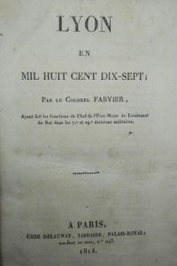 FABVIER (Le colonel Charles Nicolas). LYON EN MIL HUIT CENT DIX-SEPT. UN ET UN FONT