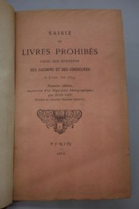 GAY (Jean). SAISIE DE LIVRES PROHIBÉS FAITE AUX COUVENTS DES JACOBINS ET DES