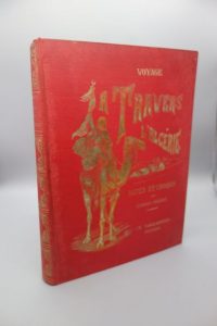 GEORGES - ROBERT. VOYAGE A TRAVERS L'ALGÉRIE. La province d'Alger - La province de Constantine - La province d'Oran - Le Sahara algérien. Description, historique, moeurs, légendes, itinéraires, etc. PARIS, DENTU (TALLANDIER sur la couverture), s. d. (1887). Un volume, grand in-8, de (2) ff., 404 pp., (5) ff., reliure éditeur habillée de percaline rouge. Dos lisse orné et doré portant le titre doré, grand décor personnalisé et doré sur le premier plat en encadrement du titre doré. Bel exemplaire.
