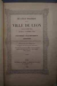 GRANDPERRET (Théodore). DE L'ÉTAT POLITIQUE DE LA VILLE DE LYON DEPUIS LE DIXIÈME SIÈCLE JUSQU'A L'ANNÉE 1789. LYON, IMPRIMERIE DE MARLE, 1843. Un volume, in-8,