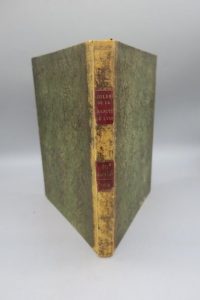demi-reliure de l'époque en basane havane. Dos lisse décoré de filets dorés et portant deux pièces de titre en maroquin rouge, tranches jaspées. Bon exemplaire.