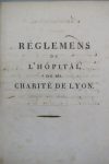 [HÔPITAL]. RÉGLEMENS (sic) DE L'HÔPITAL DE LA CHARITÉ DE LYON - RÈGLEMENT POUR L'EXERCICE DE LA MÉDECINE ET DE LA CHIRURGIE A L'HÔPITAL GÉNÉRAL DE LA CHARITÉ DE LYON. A LYON, chez CUTTY, 1808 - 1816. Un volume, in-4, de XII pp., 164 pp., 23 pp.,