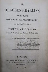 LE NORMAND (Mlle Marie Anne). LES ORACLES SIBYLLINS, ou la suite des souvenirs prophétiques, ornés de gravures. PARIS, CHEZ L'AUTEUR, 1817. Un volume, in-8, de 527 pp., (5) pp., demi-reliure de l'époque en chagrin bronze. Dos à 4 nerfs décoré et doré portant le titre doré, tranches jaspées. Coiffe supérieure très légèrement frottée.