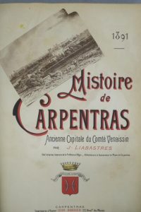 LIABASTRES (J.). HISTOIRE DE CARPENTRAS. Ancienne capitale du Comté Venaissin. CARPENTRAS, Léon BARRIER, 1891. Un volume, in-4, de 284 pp., demi-reliure à coins de l'époque en chagrin rouge. Dos à 5 nerfs très orné et doré portant le titre doré, filets dorés sur les plats, tête rouge.