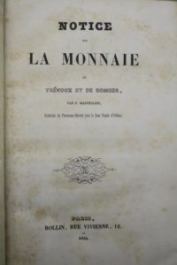 MANTELLIER (P.). NOTICE SUR LA MONNAIE DE TRÉVOUX ET DE DOMBES. PARIS, ROLLIN,