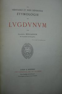 MOLLASSON (Joannès, de l'Académie du Gourguillon). LA VÉRITABLE ET BIEN DÉFINITIVE ÉTYMOLOGIE DE LUGDUNUM. LYON S/ RHOSNE, CHEZ L'IMPRIMEUR JURÉ DE
