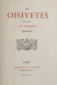 NIZIER DU PUITSPELU (Clair Tisseur). LES OISIVETÉS DU SIEUR DU PUITSPELU LYONNAIS.