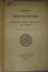 POIDEBARD (W.) - BAUDRIER (J.) - GALLE (L.). ARMORIAL DES BIBLIOPHILES DE LYONNAIS, FOREZ, BEAUJOLAIS ET DOMBES. LYON, AU SIÈGE DE LA SOCIÉTÉ, 1907. Un fort