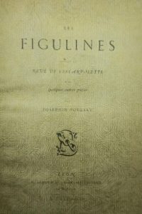 JOINT : Joséphin SOULARY. LES FIGULINES. Suivies du Rêve de l'Escarpolette & de quelques autres pièces. LYON, SCHEURING (imprimé par Louis Perrin),1862. Un volume, in-8, de VII pp., 100 pp., 24 pp.,demi-reliure à coins de l'époque en chagrin bronze. Dos à 5 nerfs portant seulement le titre doré, tête dorée, couverture conservée. Bel exemplaire au tirage limité à 200 exemplaires. Portrait de Soulary gravé en frontispice.