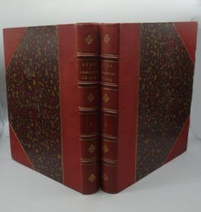 STORCK, 1890. Deux volumes, in-4, de (4) ff., 310 pp., (1) f. - (2) ff., 266 pp., (1) f., demi-reliures à coins de l'époque en chagrin cerise. Dos à 5 nerfs décorés de palettes et filets dorés portant les titres dorés, filets dorés sur les plats. Seulement les coins émoussés.