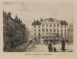 VICTORIN (Armand). L'ANCIENNE PLACE DES CÉLESTINS. (Souvenirs d'un Lyonnais). LYON, DIZAIN & RICHARD, 1887. Un volume, in-8 carré, de (2) ff., IV pp., (2) ff., 102 pp., (1) f., demi-reliure de l'époque en basane. Dos à 5 nerfs décoré de palettes et filets doré portant le titre doré, tête jaspée, non rogné, couverture conservée. Dos uniformément éclairci.
