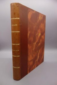 CERVANTÈS. DON QUICHOTTE DE LA MANCHE. PARIS, DELAGRAVE, 1936. Un volume, in-4, de 128 pp., demi-reliure en basane fauve. Dos lisse décoré de filets dorés et portant le titre doré. Premier plat de la couverture, avec rousseurs, conservé.