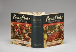 CURNONSKY. Prince des Gastronomes. BONS PLATS - BONS VINS. PARIS, Maurice PONSOT, 1950. Un fort volume, in-4, de 816 pp., (2) ff., reliure de l'éditeur, demi-percaline bronze. Plats entièrement recouverts d'une illustration en couleurs de plats préparés. Chemise papier illustrée de même. Bon exemplaire.