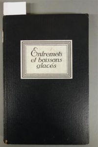 [DUMONT - LESPINE]. ENTREMETS ET BOISONS GLACÉS PAR L'APPAREIL RÉFRIGÉRATEUR. PARIS, FRIGÉCO, s. d. (années 50). Un volume, in-8, de 182 pp., cartonnage à la bradel de l'éditeur. Fond noir, étiquette de titre imprimée sur le premier plat et manuscrite au dos.