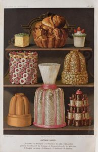 GOUFFÉ (Jules). LE LIVRE DE PÂTISSERIE. PARIS, HACHETTE & Cie, 1873. Un volume grand in-8, de (3) ff., VII pp., 506 pp., (1) f., demi-reliure de l'époque en chagrin bronze. Dos à 4 nerfs orné et doré portant le titre doré, plats habillés de percaline verte estampés à froid de motifs géométriques. Bel exemplaire.