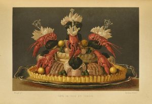 GOUFFÉ (Jules). LE LIVRE DE CUISINE. Comprenant la cuisine de ménage et la grande cuisine. PARIS, HACHETTE & Cie, 1867. Un volume, in-4, de (2) ff., XI pp., 826 pp., (1) f., demi-reliure de l'époque en chagrin bronze. Dos à 4 nerfs orné de caissons dorés et portant le titre doré, plats habillés de percaline verte et cloisonnés à froid, tranches jaspées. Reliure un peu frottée avec des restaurations correctement réalisées, cachet de libraire peu visible sur les tranches, rousseurs éparses.