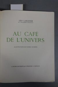 LARGUIER (Léo). AU CAFÉ DE L'UNIVERS. MONACO, L'INTERCONTINENTALE D'ÉDITION, 1945. Un volume, in-4, en feuilles (non coupées), de 160 pp., (2) ff., couverture rempliée. Double emboîtage titré de l'éditeur. Bon exemplaire.