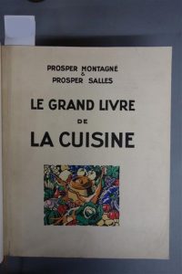 MONTAGNÉ (Prosper) & (Prosper) SALLES. LE GRAND LIVRE DE LA CUISINE. Préface de Henri Béraud. Bois de Renefer. PARIS, FLAMMARION, 1929. Un fort volume, in-4, de 1479 pp., demi-reliure à coins en basane rouge. Dos à 4 nerfs portant le titre doré dans des encadrement de filets dorés, filet doré sur les plats, tête jaspée, couverture conservée.