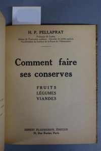 PELLAPRAT (Henri). COMMENT FAIRE SES CONSERVES. Fruits - Légumes - Viandes. PARIS, FLAMMARION, 1938. Un volume, in-8, de 93 pp., demi-reliure en chagrin corbeau. Dos à 5 nerfs décoré à froid entre les nerfs, d'une roulette dorée sur les nerfs et portant le titre doré. Couverture et dos conservés.
